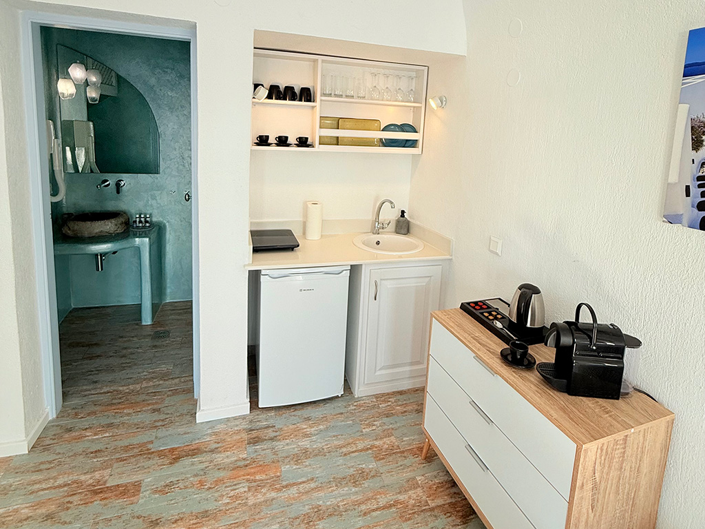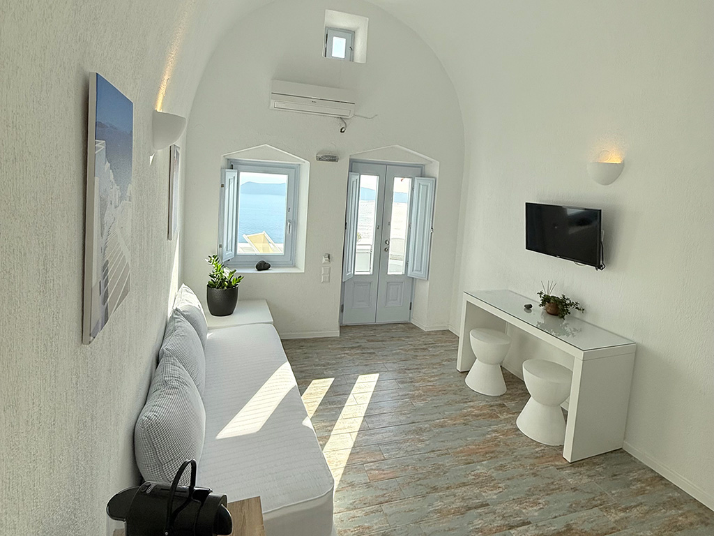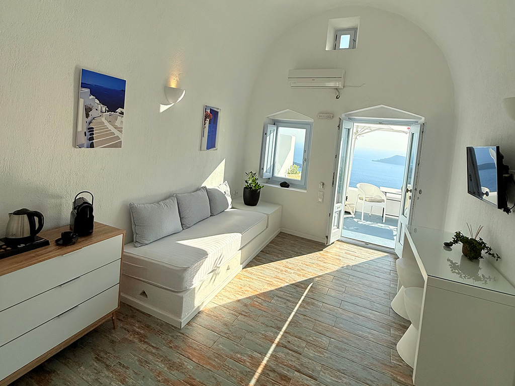 Located in Imerovigli village on the highest point of famous caldera 420m above the sea with sunset and sea view all year long.
