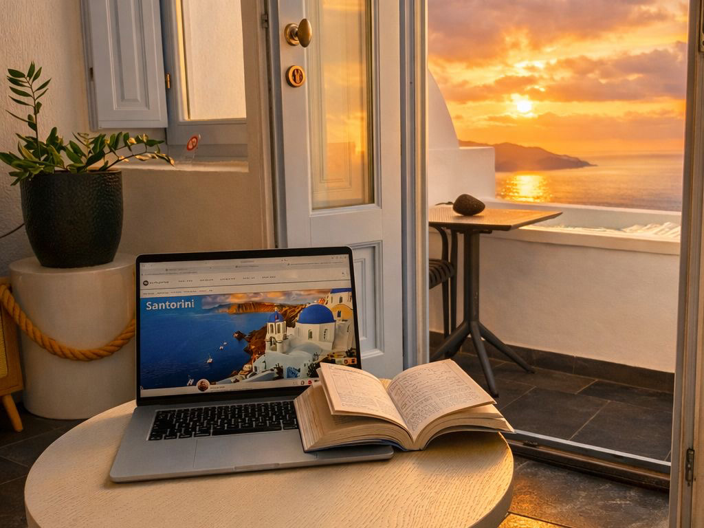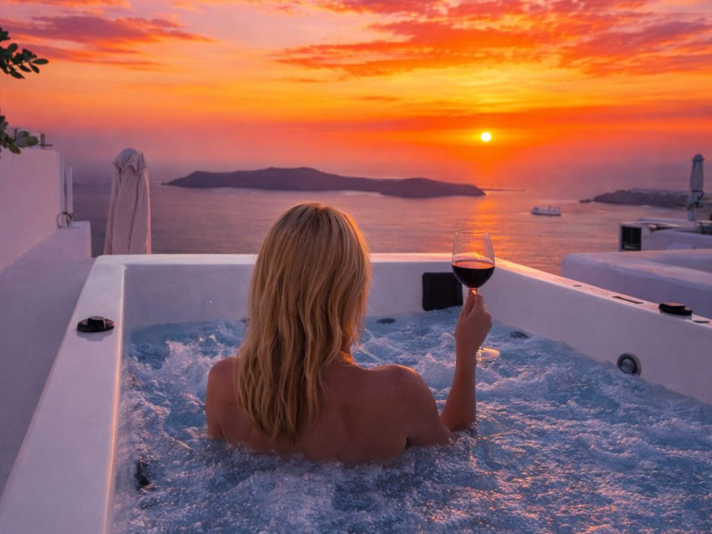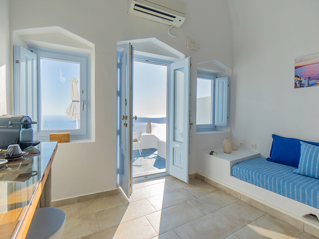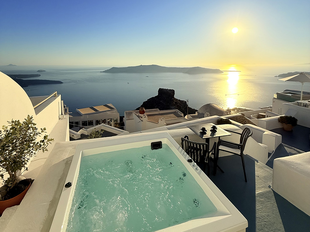 Caldera Traditional House with Private Heated Jacuzzi and sunset view all year long and sea view located on the highest point on famous caldera cliff 420 meters above the sea. In very peaceful, romantic area without stairs to access the house.