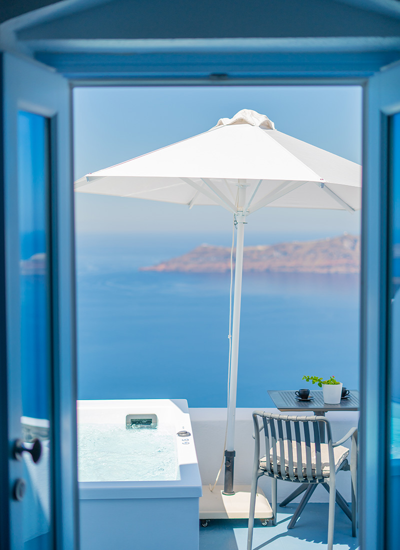 There are 3 houses next to each others with big balcony’s, outdoor areas all private in total 5 terrace and sun beds, umbrellas Private Heated Jacuzzi totally private.